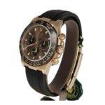 This Rolex Daytona Cosmograph Automatic Rose Gold 116515LN-0012 Replica is a stunning watch. It features a 904L stainless steel case with a black and rose gold bezel. and a sapphire crystal. The movement is an automatic caliber 4130 with a 60-hour power reserve and precision of -3/+3 sec/day within COSC certification limits. The second hand has a sweep motion. The bracelet is made of rubber with adjustable links and a 904L stainless steel fold clasp in rose gold. The dial is black with stick and dot indices. and 904L stainless steel stick hands. The watch has chronograph. column wheel. and chronometer functions. and has passed the 30m water resistance test.