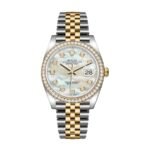 Introducing the Rolex Datejust Mother of Pearl 116243 Jubilee Replica. a timepiece that exudes elegance. luxury. and precision. This dazzling watch combines the brilliance of diamonds with the timeless beauty of mother of pearl. creating a masterpiece that stands out in any collection. The first glance unveils a symphony of luxury materials and meticulous craftsmanship. designed to mesmerize and captivate. Imagine the sparkle of the gem-set bezel catching light with every movement. and the smooth. lustrous surface of the mother of pearl dial inviting you to check the time. With the Rolex Datejust Mother of Pearl 116243 Jubilee Replica on your wrist. you’ll not only keep track of the hours but also make a chic style statement.