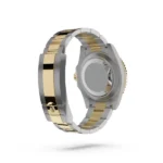 The two-tone bezel. a harmonious blend of yellow gold and caramel. further enriches its luxurious appeal. Meanwhile. the bracelet crafted from the same 904L stainless steel and coupled with a fold clasp in steel and yellow gold ensures not only adjustability but also a snug. secure fit on your wrist. This bracelet’s seamless integration with the case reflects Rolex’s commitment to both form and function.