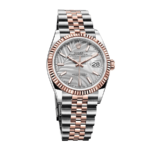 It has a jubilee type and is available in both rose gold and steel colors. The dial is nicknamed Dark Rhodium and has a slate color. It has Roman numerals as indices and 904L stainless steel stick hands. The watch is water-resistant up to 30m and comes with a 2 year international warranty. It is a perfect 1:1 clone of the authentic watch and even your jeweler won’t be able to tell the difference.