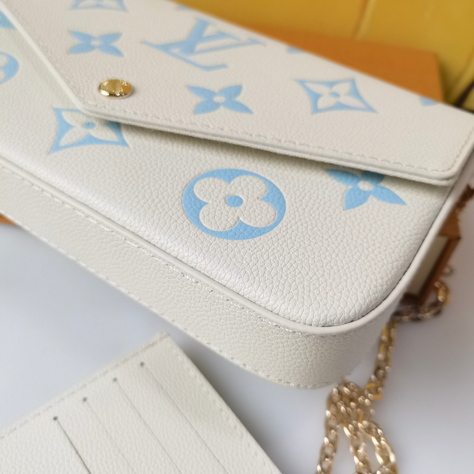 M83025 This season’s Pochette Félicie is reinterpreted in soft Monogram Empreinte leather. The soft two-tone color scheme highlights the embossed letter pattern. A stylish and versatile pouch comes with two removable pockets and a gold chain. You can use it as a shoulder bag or as a clutch after removing the chain. Size: 21*12*3cm.