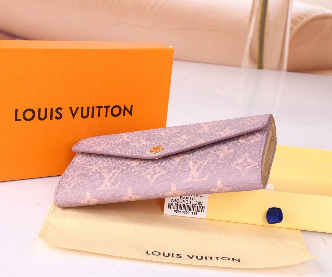 Top Original 💎 [Physical Shot, Own Background] M60531 Light Purple, this Brazza wallet is laid out in grained leather with uneven Monogram printing, with clever card positions, zipper change bags and inner sticker bags for storing banknotes and bills. 19 x 10.5 x 2.5 cm