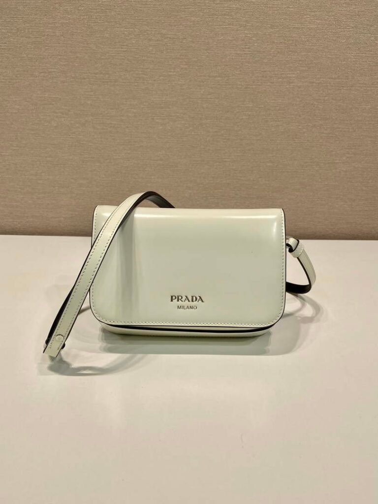 Replica Prada 2VD061 Black Brushed Leather Mini-bag With Shoulder Strap White