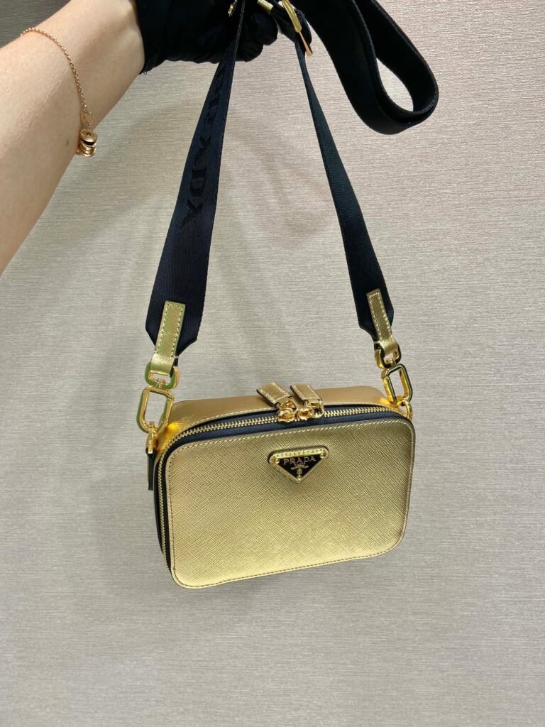 Replica Prada 2VH070 Saffiano Gold leather Prada Brique bag