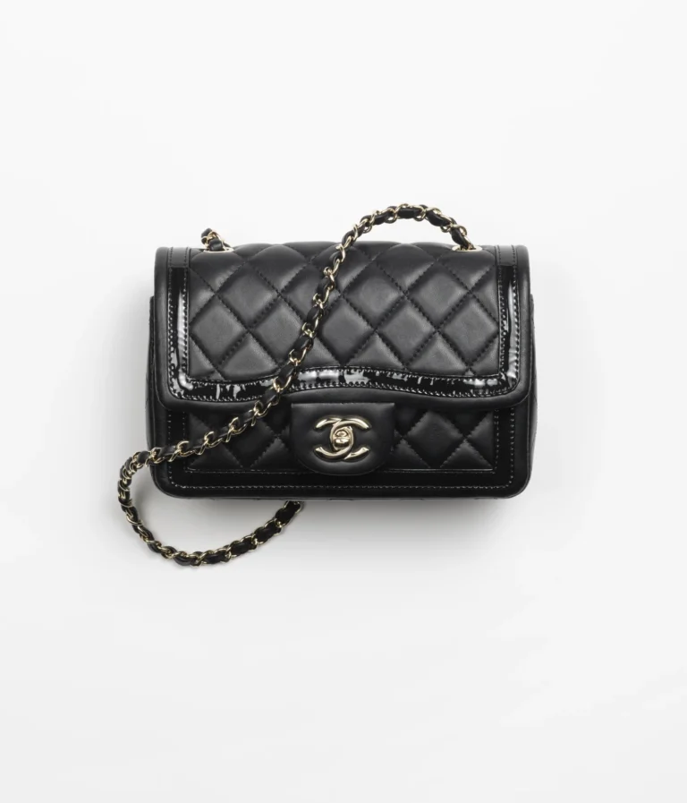 CHANEL / MINI FLAP BAG Lambskin. Patent Calfskin & Gold-Tone Metal Black